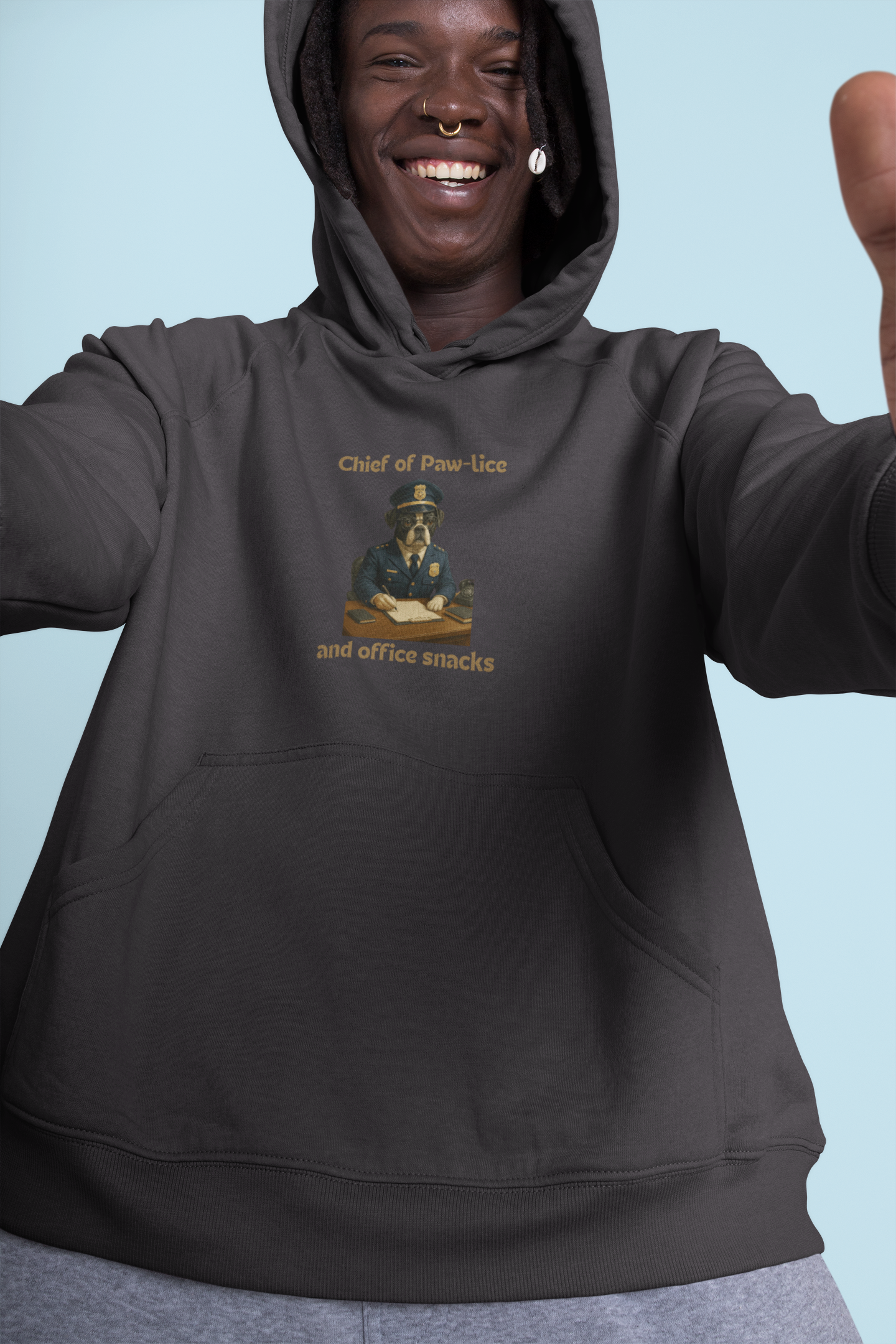 Introducing the hilarious "Chief of Paw-lice" artwork, a whimsical digital illustration that reimagines a Boston Terrier as a serious police chief. The image features a dapper dog dressed in an official navy blue police uniform, complete with a peaked cap, badge, and rank insignia, sitting at a wooden desk with an old-fashioned rotary telephone and writing materials. The dog's expressive face, adorned with distinctive round glasses, conveys a comically stern demeanor that perfectly captures the "tough but fair" law enforcement stereotype. The clever wordplay in the title—"Chief of Paw-lice and office snacks"—adds a playful touch to the already amusing concept, suggesting the dog's dual responsibilities of maintaining law and order and enjoying some workplace treats. The artwork is rendered in a photorealistic style with rich, deep colors and dramatic lighting that enhances the mock-serious tone of the piece. Set against a dark background, the image draws full attention to the meticulously detailed police dog, creating a striking visual that is both humorous and artistically impressive. This piece would appeal to dog lovers, law enforcement enthusiasts, and anyone who appreciates quirky, anthropomorphic art that plays with professional stereotypes. The high-quality illustration showcases exceptional attention to detail, from the texture of the dog's fur to the precise rendering of the police uniform and office accessories. It's a perfect conversation starter, wall art piece, or gift for those who enjoy clever, animal-themed humor. The image successfully blends comedy, artistic skill, and a charming reimagining of a professional role through an unexpected canine lens.Fantasy Dog Portraits