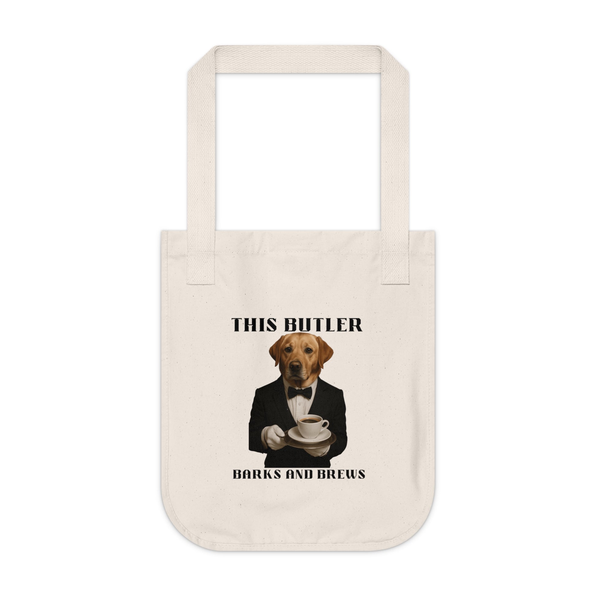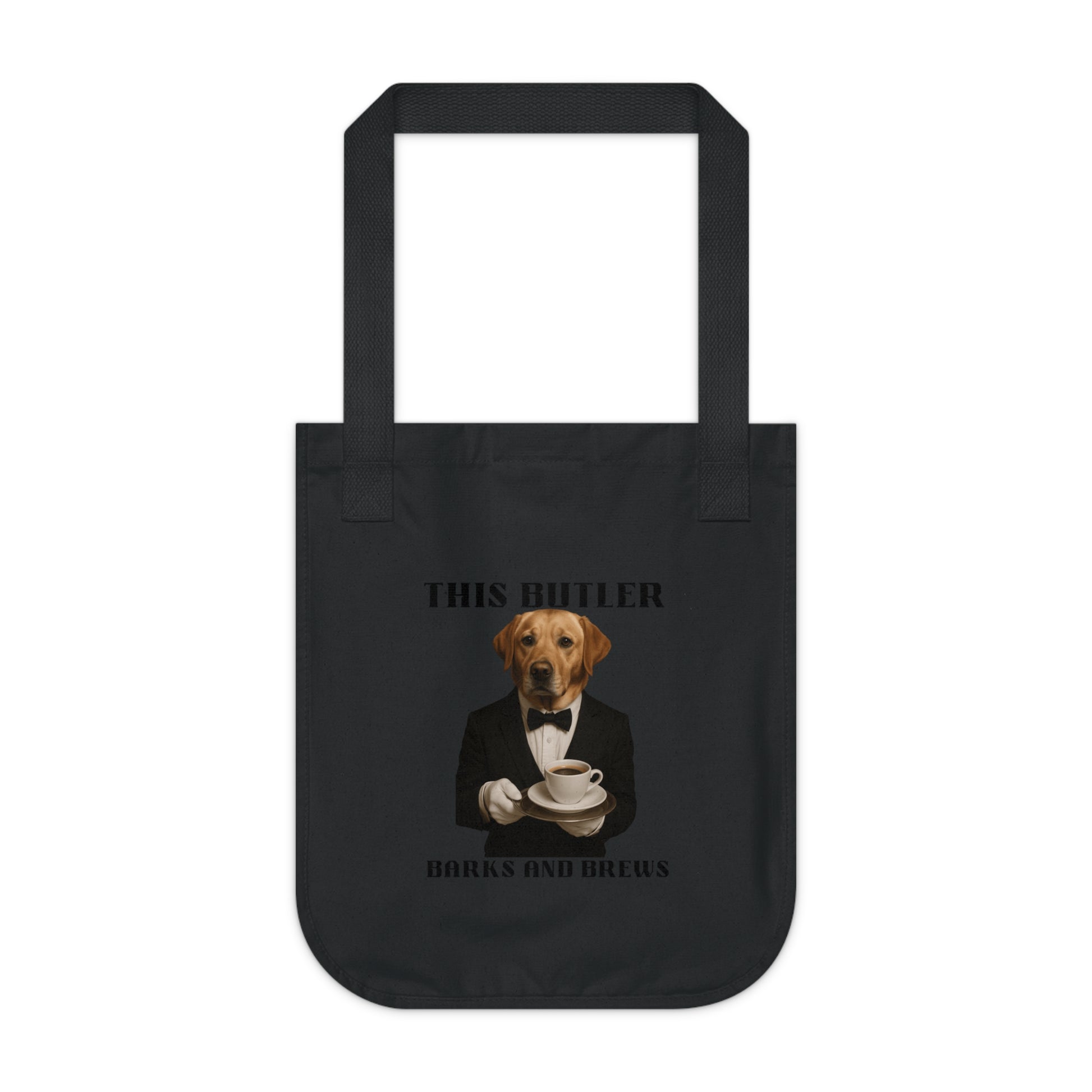 Discover the whimsical world of "This Butler Barks and Brews," a humorous digital illustration featuring a sophisticated Labrador Retriever dressed in a formal tuxedo and bow tie. The image playfully anthropomorphizes the dog, transforming him into an elegant butler serving a steaming cup of coffee. With expressive eyes and a charming pose, the canine butler stands ready to cater to your beverage needs, holding a pristine white coffee cup and saucer. The graphic design employs a stylized, high-contrast aesthetic that emphasizes the dog's regal demeanor and the comedic premise of a four-legged service professional. This eye-catching artwork combines photorealistic dog portraiture with a playful concept, creating a memorable and shareable image that's sure to delight dog lovers and coffee enthusiasts alike.Fantasy Dog Portraits