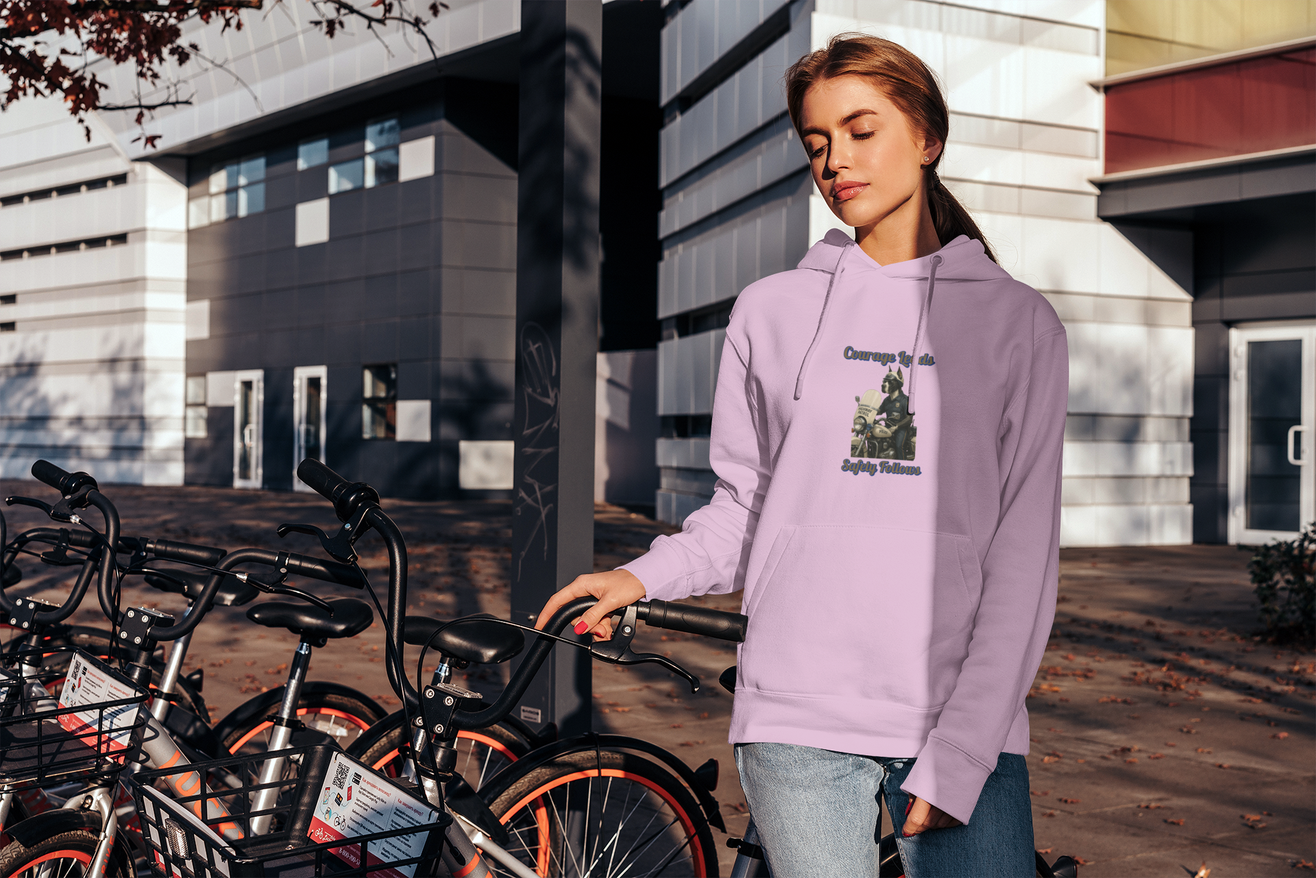 This striking illustration depicts an anthropomorphic dog as a highway patrol police officer, embodying the message "Courage Leads, Safety Follows." The image features a muscular canine figure dressed in a classic police uniform, complete with a badge, dark sunglasses, and a police cap. He stands alongside a vintage police motorcycle, with "Highway Patrol" prominently displayed on the windshield. The artwork is rendered in a detailed, realistic style against a black background, creating a dramatic and powerful visual impact. The color palette consists of muted blues, grays, and cream tones, giving the image a sophisticated and professional feel. The motorcycle appears to be a classic model, meticulously detailed with chrome elements and authentic police markings. The dog's posture suggests authority, discipline, and readiness, symbolizing the dedication of law enforcement officers. The text at the top and bottom of the image, "Courage Leads, Safety Follows," reinforces the theme of protection and public service. This unique artistic representation transforms a traditional law enforcement scene into a compelling narrative about courage, responsibility, and keeping communities safe. The image serves as a creative tribute to highway patrol officers and their critical role in maintaining road safety.Fantasy Dog Portraits