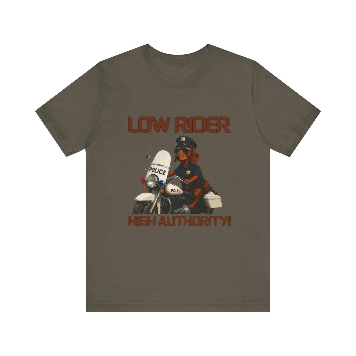 Discover an iconic piece of pop art celebrating law enforcement with this vintage "Low Rider High Authority" poster featuring a stylized canine police officer mounted on a classic white police motorcycle. The graphic design showcases bold, dimensional brown lettering against a black background, creating a striking visual contrast that immediately captures attention. Every detail of the police motorcycle is meticulously rendered, from its authentic white color scheme to the precise emergency lights and official "POLICE" markings. The anthropomorphic dog officer is depicted wearing a traditional blue police uniform, complete with a badge and official belt, embodying a sense of authority and professionalism. The artwork cleverly plays with the "low rider" cultural concept, reimagining it through a law enforcement lens with humor and artistic skill. The illustration's style suggests a late 20th-century graphic design approach, likely from the 1980s or early 1990s, with its rich color palette and graphic novel-inspired aesthetic. Detailed shading and realistic motorcycle mechanics demonstrate the artist's commitment to technical accuracy alongside creative interpretation. The poster's playful title "Low Rider High Authority!" creates an amusing juxtaposition between street culture and official law enforcement imagery. This unique piece of art serves not just as a decorative item but as a conversation-starting commentary on police culture and visual representation. The image represents a distinctive blend of humor, cultural commentary, and graphic design excellence.Fantasy Dog Portraits