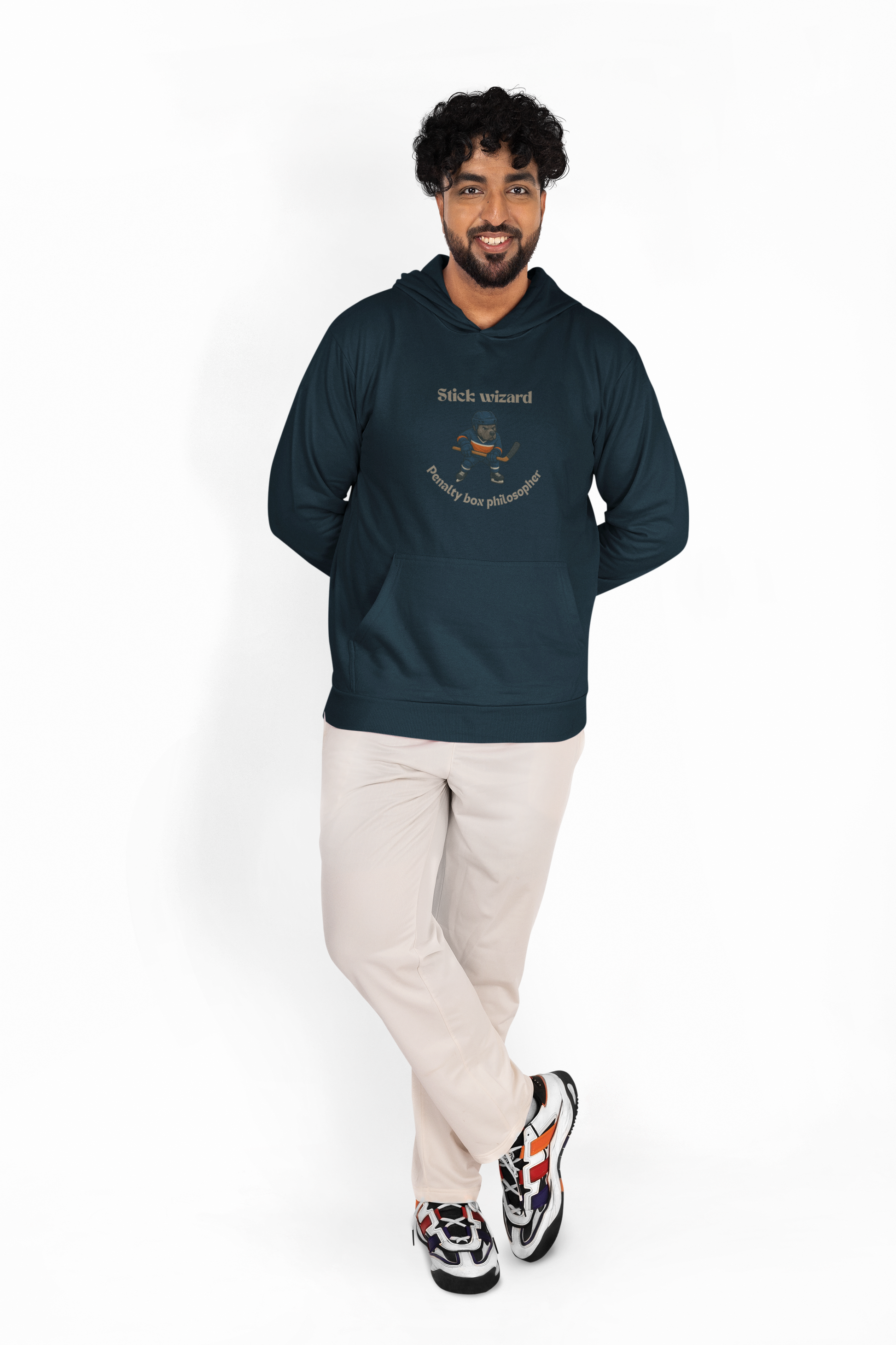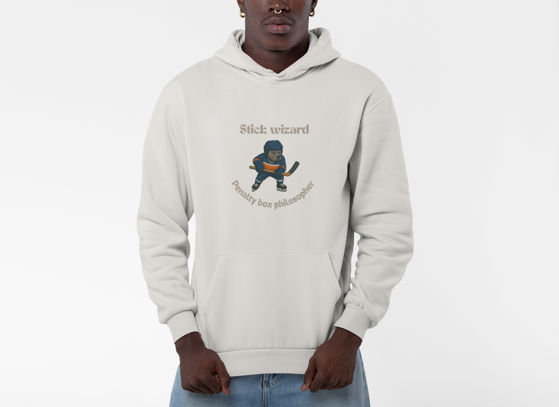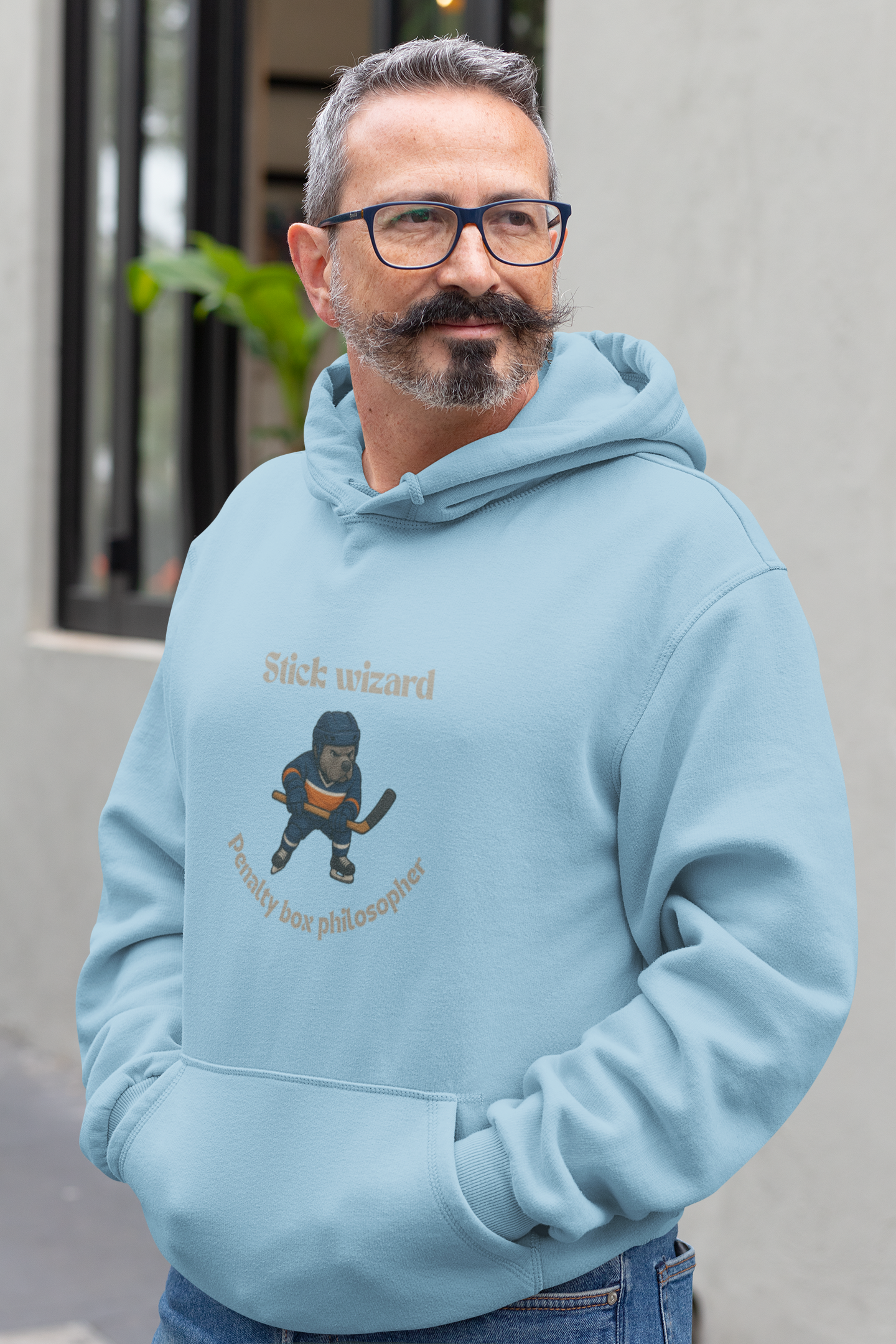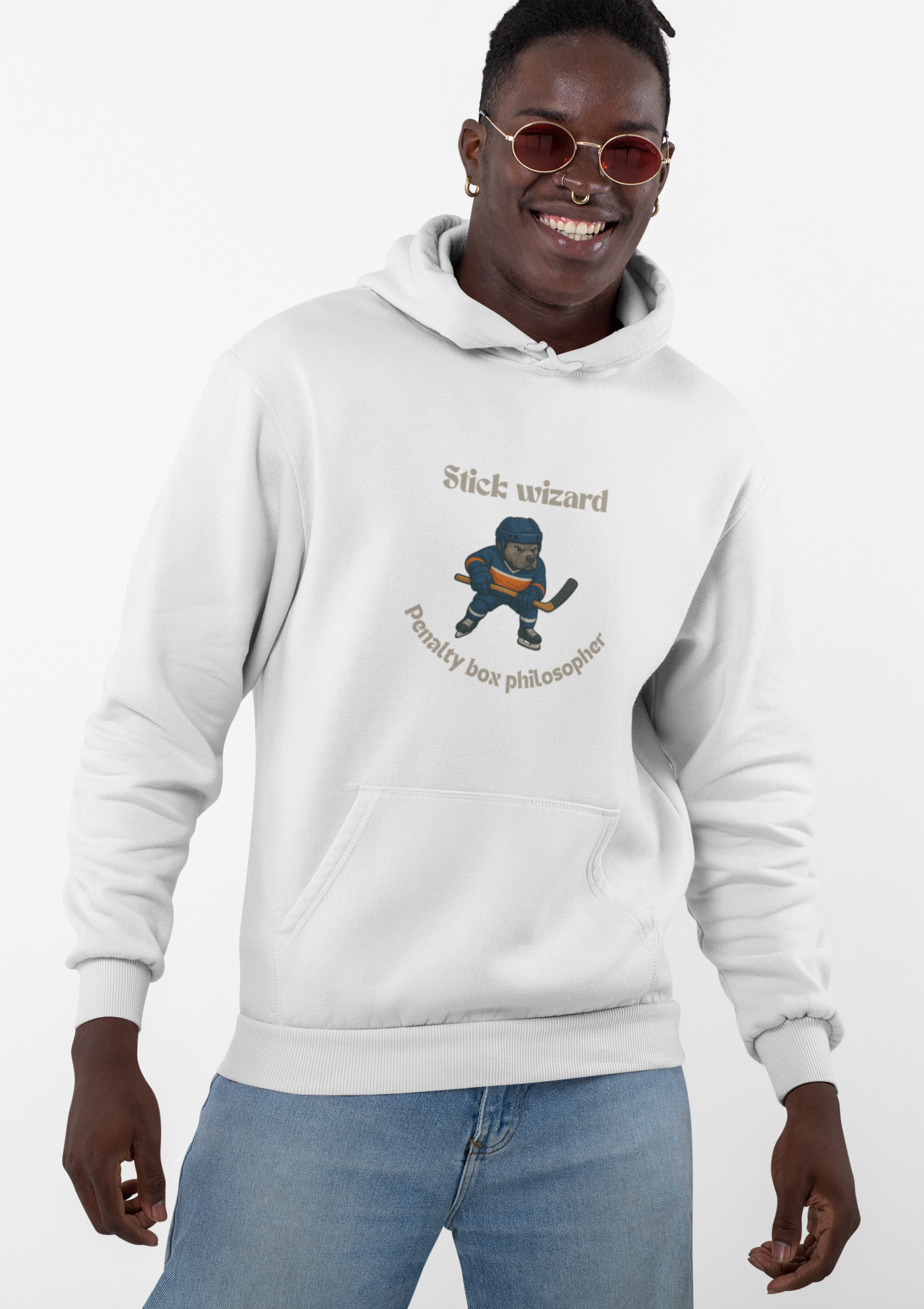 Introducing the "Stick Wizard: Penalty Box Philosopher" - a humorous and eye-catching illustration that combines the world of hockey with anthropomorphic art. The image features a determined bulldog character dressed in a blue and orange hockey uniform, complete with protective gear and a hockey stick. Positioned in a classic hockey stance, the dog looks ready to take on any challenge with its intense, focused expression. The graphic design uses a dark background to make the character pop, creating a striking visual contrast. The playful typography adds to the image's charm, with "Stick Wizard" and "Penalty Box Philosopher" arching around the central figure in a stylized, retro-inspired font. This design cleverly personifies the spirit of hockey, transforming a typical player into a wise and powerful "wizard" of the sport. The detailed illustration showcases the character's muscular build, hockey gloves, helmet, and skates, giving it a sense of authenticity and humor. Perfect for hockey fans, sports enthusiasts, and those who appreciate quirky, character-driven artwork, this image combines athletic prowess with whimsical design. The concept plays on the idea of a hockey player as a strategic thinker, a "philosopher" who understands the nuanced art of the game. Whether as a poster, t-shirt design, or digital artwork, this "Stick Wizard" is sure to catch the eye and spark conversation.Fantasy Dog Portraits