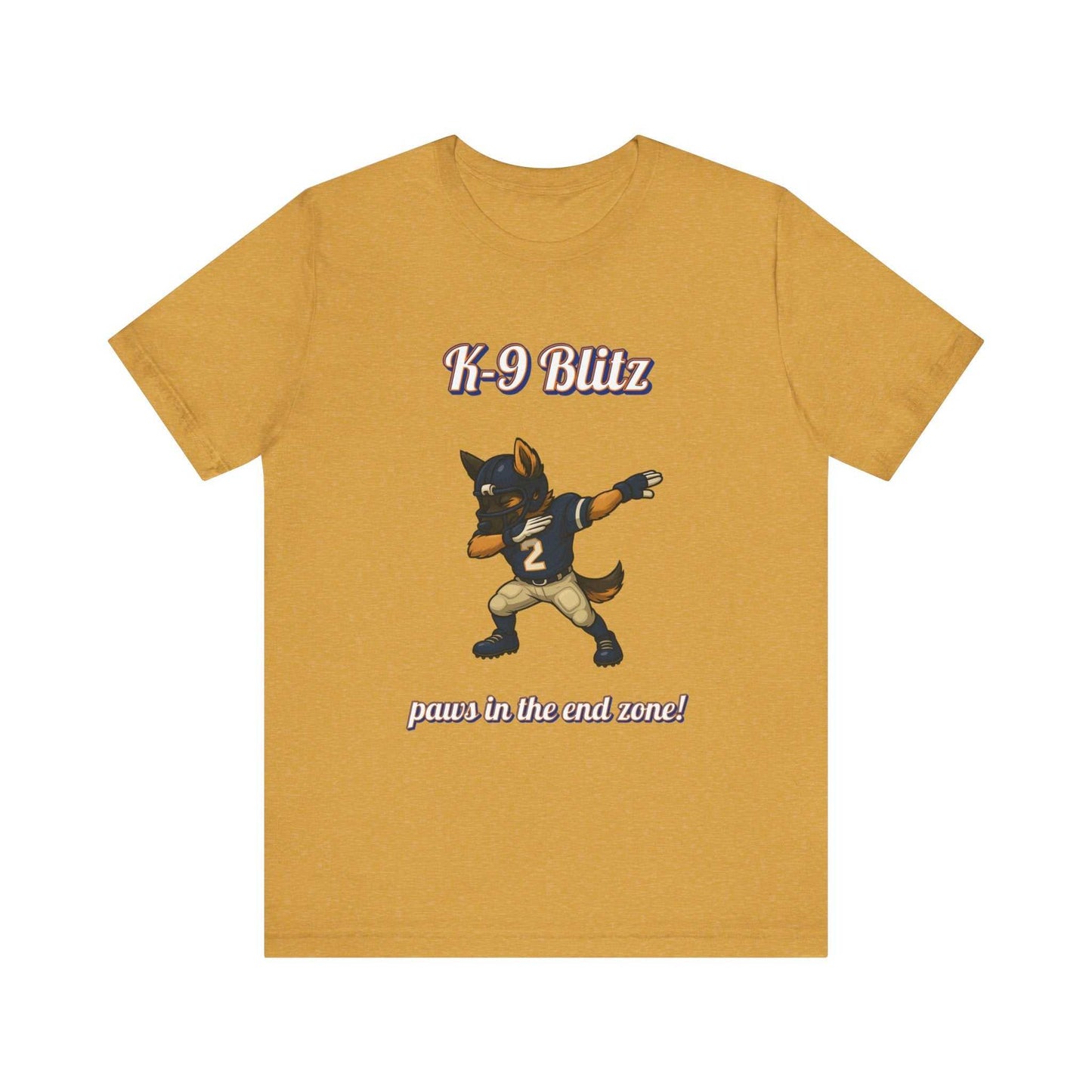 Discover the ultimate canine football mascot in the "K-9 Blitz" artwork, a playful and dynamic illustration that captures the spirit of athletic competition. The image features an anthropomorphic dog wearing a football uniform with the number 2, striking a signature touchdown celebration pose against a sleek black background. Rendered in a vibrant, cartoon-style graphic, the character embodies energy and team spirit with its bold stance and athletic gear. The color palette of navy blue, golden yellow, and white creates a visually striking composition that immediately draws the viewer's attention. Clever wordplay in the tagline "paws in the end zone!" adds a humorous touch to the design, highlighting the playful intersection of sports and animal imagery. The illustration showcases meticulous detail, from the dog's football helmet and protective gear to the carefully designed jersey and pants. This image would appeal to sports fans, dog lovers, and graphic design enthusiasts alike, offering a unique and entertaining take on football mascot culture. The "K-9 Blitz" concept transforms the traditional sports imagery by introducing an adorable yet fierce canine athlete ready to score. With its high-energy pose and witty branding, this graphic represents a creative fusion of sports excitement and animal charm. The artwork successfully captures the fun, competitive spirit of football through its imaginative and engaging visual storytelling.Fantasy Dog Portraits